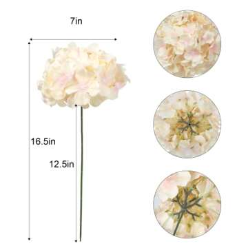 Show moreIntroduce some brilliance into your home with the Alishomtll Hydrangea Artificial Flowers, a stunning collection of 5 faux decorative flowers designed for all occasions! These exquisite silk flowers feature a vivid full bloom with 54 petals per head, making each piece a blooming masterpiece! Crafted carefully by skilled artisans, these artificial hydrangeas are not only beautiful but also flexible for creative arrangements, making them perfect for both professional florists and DIY decorators. Let these real-touch champagne silk flowers bring a fresh, vibrant touch to your decor without the worries of upkeep.