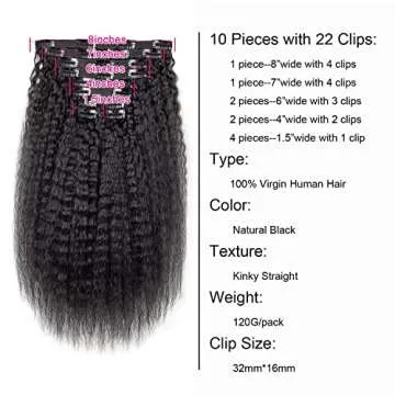 Alishow Kinky Straight Clip in Human Hair Extensions for Black Women Kinky Straight Clip Ins 16Inch 10 PCS 120g Natural Black Human Hair Full Head Unprocessed Remy Yaki Hair Clip in Extensions
