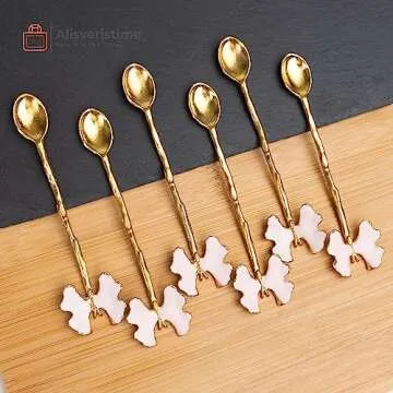 Alisveristime Exquisite Butterfly Motif Tea Spoons - Decorative Stirring, Sugar, Tea Spoons (Set of 6) (Butterfly-Gold) (Pink)