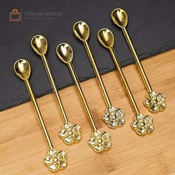 Alisveristime Traditional Ottoman Motif Tea Spoons - Decorative Stirring, Sugar, Tea Spoons (Set of 6) (Daisy) (Gold)