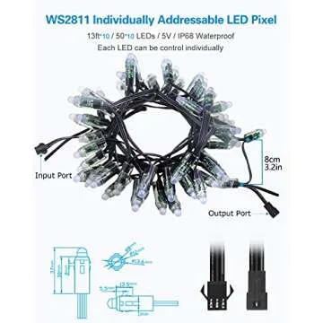 ALITOVE RGB LED Pixels - 12mm Diffused Full Color LED Module for Outdoor Advertising Signs - 500pcs - IP68 Waterproof - Black Wire - DC 5V