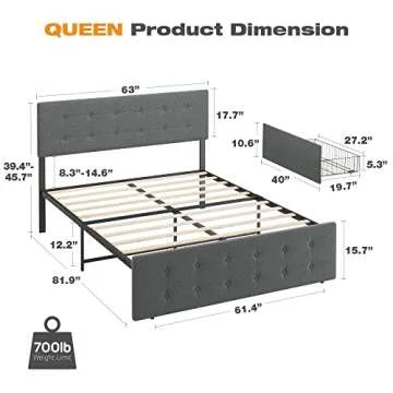 Alkmaar Queen Size Platform Bed Frame with 4 Storage Drawers,Grey Queen Size Upholstered Platform Bed Frame with Headboard and Wooden Slats Support No Box Spring Needed (Queen)
