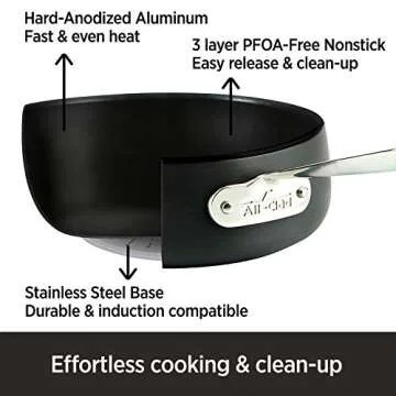 Show more The All-Clad HA1 Hard Anodized Nonstick 12 inch Chef's Pan with lid is the perfect addition to any kitchen, designed with the culinary enthusiast in mind. Crafted from high-quality materials, this stunning chef's pan features a flat base and wide mouth that allows for versatile cooking techniques, making it ideal for sautéing, frying, and simmering. The flared sides are not just for looks; they enhance stirring and flipping, providing ease and convenience in your culinary endeavors.