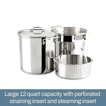 Show moreIntroducing the All-Clad Specialty Stainless Steel Stockpot – a versatile multi-pot that redefines your cooking experience! This 4-Piece set is not just about functionality; it combines elegance with practicality, featuring a stunning high-polished stainless steel finish that is duty and warp-resistant. With a generous 12-quart capacity, you can prepare everything from hearty soups to delicate steamed dishes effortlessly. Whether you're hosting a large family gathering or a casual dinner, this stockpot is your go-to solution for every culinary adventure.
