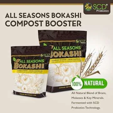 Show more Transform your gardening experience with the All Seasons Bokashi Compost Starter – a revolutionary product that makes composting easier, more efficient, and environmentally friendly. This compost starter not only promotes the composting process but also significantly enhances soil quality, making it an essential addition to any gardener's toolkit. Made by SCD Probiotics, known for their commitment to eco-friendly practices, this 5.5 lb bag of dry bokashi bran is perfect for both outdoor composting and indoor kitchen scrap bins.