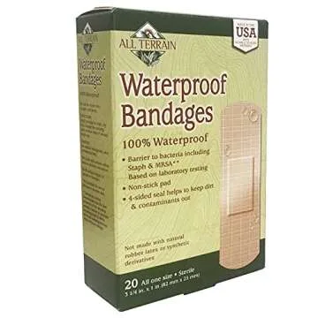 All Terrain Waterproof Strong Strip Bandages, 100% Sterile, Adhesive, Latex-Free, Non-Stick Pads, 1.0 x 3.25-Inch, 20 Ct
