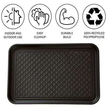 All-Weather Indoor/Outdoor Boot Tray - Weather-Resistant Hard Plastic Shoe Mat with Raised Edge for Entryways, Decks, and Patios by Stalwart (Black)