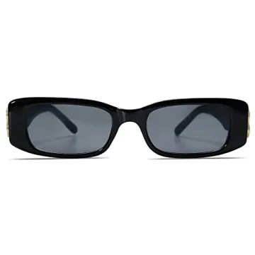 Show more Introducing the Allarallvr Rectangle Sunglasses, a stylish fusion of retro vibes and contemporary fashion. These 90s-inspired sunglasses boast a trendy Y2K aesthetic, making them a must-have accessory for fashion enthusiasts. Crafted with 99% UV (UVA & UVB) protection and HD TAC lenses, they efficiently cut glare and eliminate scattered light, ensuring your eyes are safeguarded from harmful rays. The lightweight material used in these sunglasses not only provides comfort for all-day wear but also features a super sturdy hinge design that enhances their longevity. The enlarged rectangular frames are designed to flatter a variety of face shapes, allowing you to effortlessly elevate your look with these chic shades.