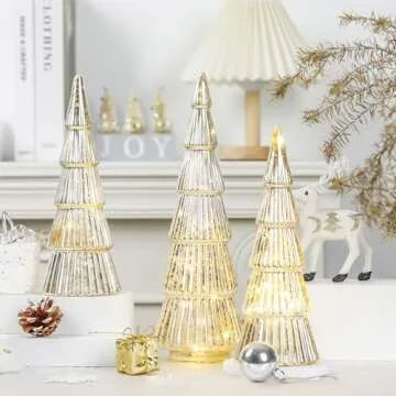 Allbaiyl 3 Pcs Mercury Glass Christmas Tree with Lights Table Top Gold Christmas Tree Holiday Home Tabletop Centerpieces Mantle Decor (Gold)