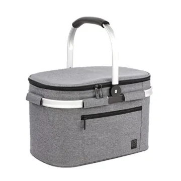 ALLCAMP Insulated Cooler Bag Portable Collapsible Picnic Basket Cooler with Sewn in Frame (Medium Gray)