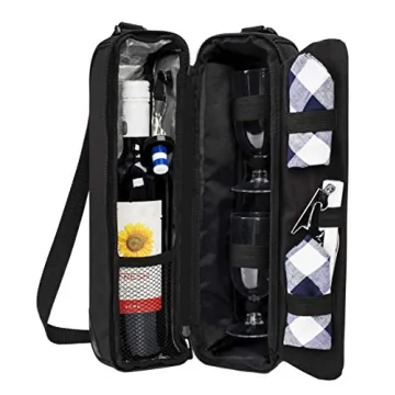 ALLCAMP Wine tote Bag with Cooler Compartment,Picnic Set Carrying Two sets of tableware