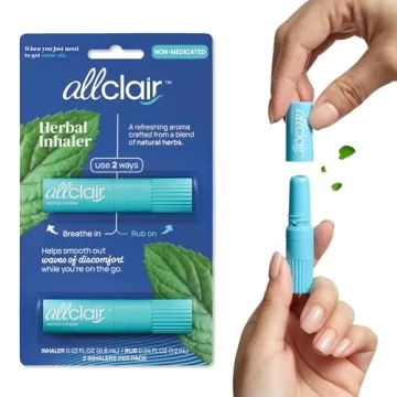Show more Embrace comfort and confidence while traveling with the Allclair Herbal Inhaler, your new best friend in combating nausea and motion sickness. This innovative product is meticulously crafted for individuals who often find themselves battling nausea—whether it's during a cruise, a long road trip, or a flight across the skies. The Allclair inhaler blends the best of nature with modern travel needs, delivering drug-free relief through a soothing aroma that brings instant comfort.