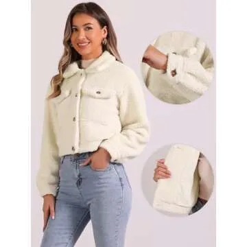 Allegra K Fuzzy Fleece Jacket for Women's Casual Faux Fur Button Winter Outerwear Short Coat Small Beige
