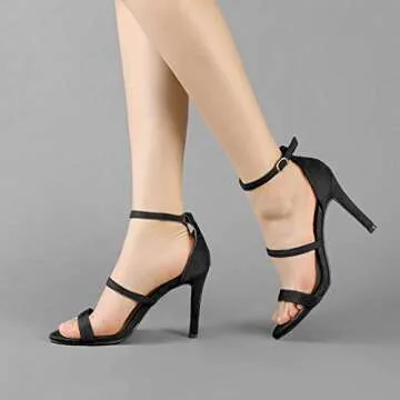 Allegra K Women Open Toe Triple Straps Stiletto High Black Heel Sandals 7 M US