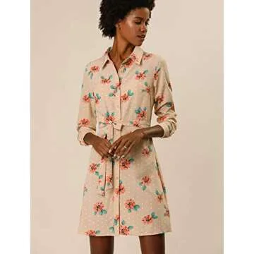 Allegra K Women's Button Down Vintage Polka Dots Dresses Collar Tie Belted Shirt Dress Medium Apricot