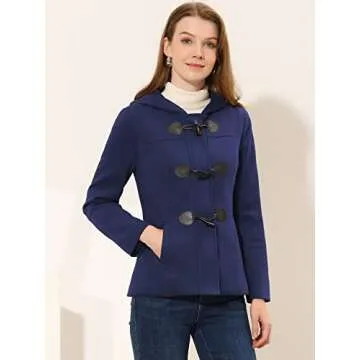 Show more Introducing the Allegra K Women's Casual Winter Outwear Hooded Button Peacoat Toggle Duffle Coat, a stylish and versatile addition to your cold-weather wardrobe. This fashionable coat cleverly merges elegance with functionality, making it your go-to piece for autumn and winter. Crafted with precise attention to detail, its hoodie design not only adds a distinct touch but also provides extra warmth for your chilly outings. The luxurious fabric ensures you stay cozy without compromising on style, making it suitable for a range of activities from casual gatherings to more formal occasions.