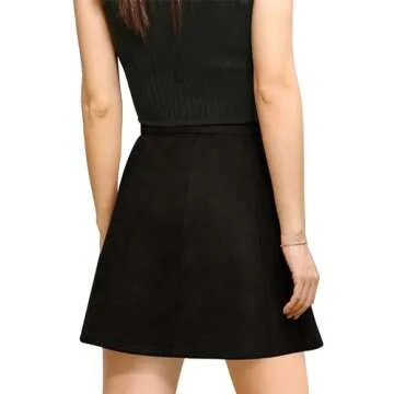Allegra K Women's Faux Suede Button A-Line High Waisted Christmas Flared Mini Short Skirt