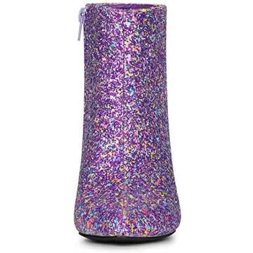 What sets the Allegra K Women's Glitter Ankle Boots apart from competitors is their exceptional blend of fashion and functionality. Unlike many other styles on the market, these boots feature a secure fit with added grip from sequined detailing, reducing the risk of slips on the dance floor. The unique purple glitter finish is not widely offered, allowing you to embrace a style that stands out in a sea of ordinary footwear options. Additionally, the height and width of the heel provide greater stability compared to similar designs, ensuring comfort for all-day wear.