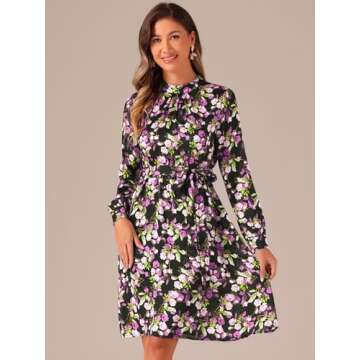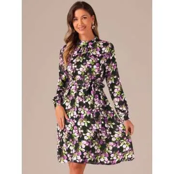 Show moreIntroducing the stunning Allegra K Women's Mock Neck Swing Knee Length Long Sleeve A-line Floral Dress, a versatile and chic addition to your wardrobe. Crafted from a lightweight and soft fabric, this dress offers unparalleled comfort and breathability, making it perfect for transitional seasons such as spring, fall, and autumn. With its elegant mock neck design and long sleeves, it strikes the perfect balance between style and warmth. The practical button cuffs offer a touch of sophistication while allowing for easy adjustments. The highlight of this dress is its tie waist feature, which beautifully accentuates your figure, while the knee-length cut provides a classic and flattering silhouette. The keyhole back adds an alluring detail that ensures heads will turn as you walk by. Unlined for a lightweight feel, this dress is easy to wear and care for, retaining its quality even after multiple cold washes.