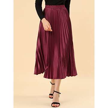 Lining, Stretchy High Waisted, A Line, Solid Metallic Color Midi Skirt