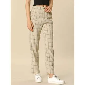 Show moreIntroducing the Allegra K Women's Plaid Pants – the ultimate blend of style and comfort! Crafted for the modern woman, these medium khaki trousers feature a chic plaid pattern that effortlessly transitions from day to night. With functional two-side pockets for your convenience and an elastic waist that offers a comfortable, adjustable fit, you'll find yourself reaching for these pants again and again. The straight-leg design ensures a flattering silhouette, while the lightweight fabric promises all-day ease, making them a go-to choice for office wear and casual outings alike.