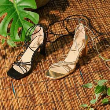 Allegra K Women's Square Heels Lace Up Strappy Chunky High Gold Heels Sandals 11 M US