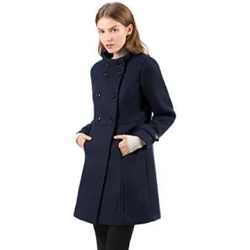 Allegra K Women's Stand Collar Double Breasted Slant Pockets Trendy Outwear Winter Coat Small Blue