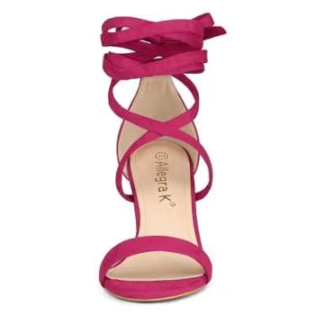 Allegra K Women's Strappy Lace Up Chunky High Heels in Hot Pink Sandals