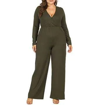 Show moreIntroducing the Allegrace Women Plus Size Sexy Wrap V Neck Long Sleeve Jumpsuits, a stunning addition to your wardrobe that combines elegance with comfort. This gorgeous army green romper is designed for the modern plus-size woman who wants to exude confidence and style. Crafted from high-quality materials, it features a flattering wrap V-neck design and long sleeves, making it perfect for all seasons. The wide-leg fit adds a touch of sophistication, while the versatile color allows for easy pairing with your favorite accessories.