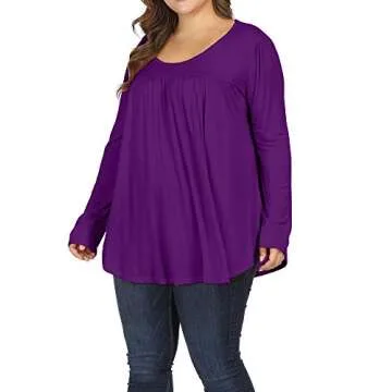 ALLEGRACE Womens Plus Size Tops Loose Fit Long Sleeve Fall Dressy Pleated Shirts Purple 3X
