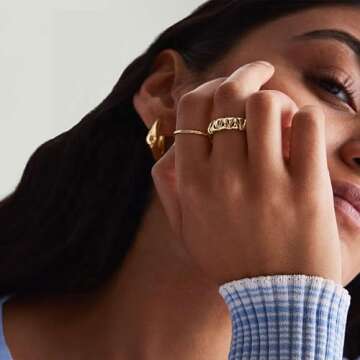 AllenCOCO Chunky Gold Plated Rings for Women - Trendy Cubic Zirconia 14k Gold Filled Stackable Rings