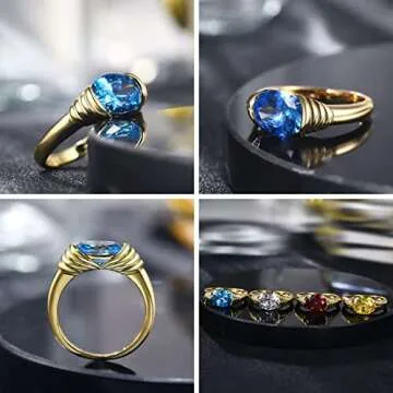 AllenCOCO Gold Ring for Women Trendy Gemstone Chunky Ring 18k Gold Plated Band Ring Signet Statement Ring