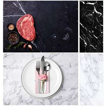 Allenjoy 3pcs 34.4x15.7 in Double Sided Photography Background 2 in 1 Black Marble Wood Texture Pattern Paper Tabletop Backdrop Food Jewelry Cosmetics Makeup Professional Photo Shoot