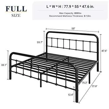 Allewie Full Size Metal Platform Bed Frame with Victorian Style Wrought Iron-Art Headboard/Footboard, No Box Spring Required,Black