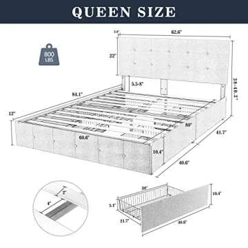 Allewie Queen Upholstered Platform Storage Bed Frame with 4 Drawers & Adjustable Headboard, Square Stitched Button Tufted Design, Mattress Foundation, Light Grey