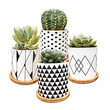 Show moreIntroducing the **ALLFEIYA Succulent Plants Pots**, the perfect blend of style and functionality for plant lovers! Each set features four meticulously crafted ceramic pots, designed with modern geometry that will undoubtedly enhance your living space. Measuring at a compact size of **3.3 inches high** and wide, these pots are perfectly suited for succulents, cacti, or even small herb plants. What’s more, they come equipped with a drainage hole to prevent water buildup, ensuring optimal health for your beautiful plants. Each pot also includes a chic bamboo saucer, adding an extra touch of elegance to your décor. Whether it’s for your home, office, or outdoor area, these pots are sure to make a statement.