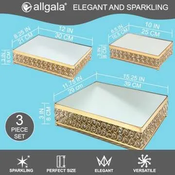 When stacked against similar cake stand sets, the **Allgala Wedding Cake Stands** shine not just in aesthetics but also in functionality. Many competitors use basic plastic, which can detract from your elegantly crafted desserts. In contrast, our glass design features luxurious crystal detailing and mirror plates—elements that amplify light and capture attention. Unlike other sets, our stands come fully assembled, providing true convenience to hosts looking to create a beautiful display without the fuss of assembly.