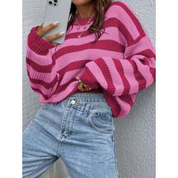 The relaxed fit features drop shoulders and a round neckline, ensuring maximum comfort for casual outings. You won’t have to sacrifice style for coziness, as its trendy striped pattern seamlessly combines functionality with fashion. This sweater not only keeps you warm but also adds a striking visual element to any outfit!
