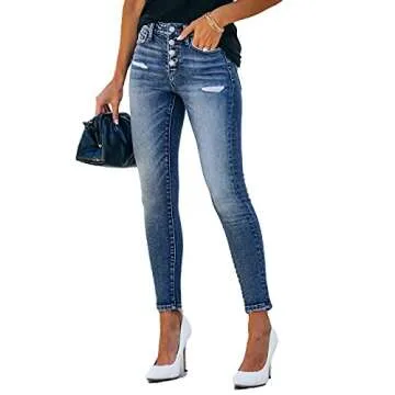 Allimy Women's High Waist Skinny Stretch Ripped Jeans Destroyed Denim Pants 10