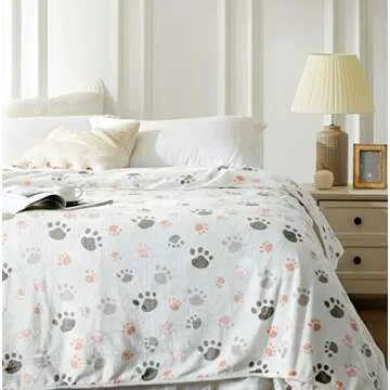 Allisandro 350 GSM-Super Soft and Premium Fuzzy Flannel Fleece Pet Dog Blanket, The Cute Print Design Washable Fluffy Blanket for Puppy Cat Kitten Indoor Outdoor, White, 32 x 24 Inches