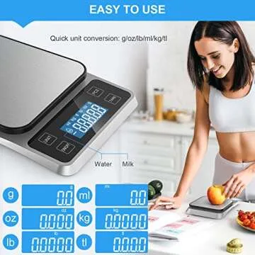 The innovative Easy Tare Function allows you to conveniently subtract the weight of any containers, ensuring you only measure the ingredients you need. The added ‘PCS’ button lets you count items like beans, beads, or coins effortlessly. With 6 different units of measurement easily selectable, you can switch between oz, lb, kg, g, ml, and tl with a touch of a button.