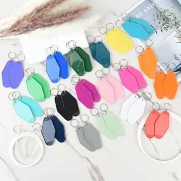 AllReal 40Pcs Vintage Motel Keychains 20 Colors Retro Hotel Keychain Blanks Heat Transfer Ornaments for Christmas Vinyl DIY Crafting Keychain Luggage Tag Label Making Xmas Tree Hanging