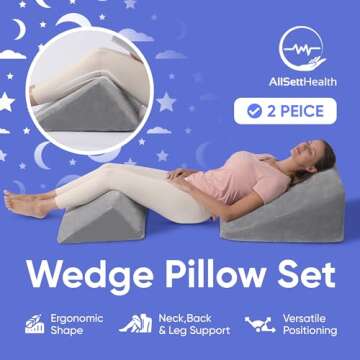 AllSett Health Bed Wedge Pillow – 2 Separate Memory Foam Incline Cushions, System for Legs, Knees and Back Support Pillow - Grey
