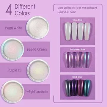Allstarry Chrome Nail Powder 4 Colors Iridescent Aurora Powder Metallic Mirror Effect Pigment Pearlescent Mermaid Glitter Unicorn Glitter for Nail Art Manicure Decoration Home DIY Salon - Ice Series