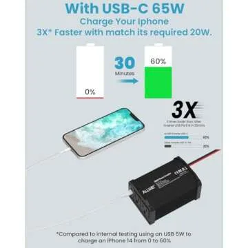 ALLWEI 300W Car Power Inverter DC 12V to 110V AC for Vehicles Converter USB-C PD65W/18W Fast Charging Ports Car Charger Adapter (Black)