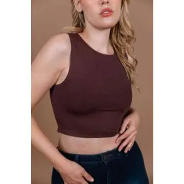 Almere Contour Tank Top for Women, Sleeveless High-Neck Cropped Double Lined Seamless Fabric, Medium, Clay