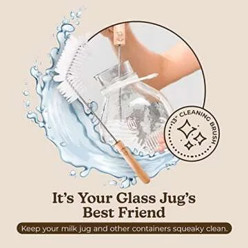 Show moreExperience Effortless Cleaning with the Almond Cow Milk Jug Bottle Brush, your go-to tool for keeping milk jugs, water bottles, and juicer containers spotless. This innovative cleaning brush is not only a simple solution but a trendsetting accessory that transforms your everyday chores into quick and easy tasks. Designed to enhance your cleaning experience, this premium bottle cleaner features a long 13-inch handle and an exciting angled design, ensuring you can reach every nook and cranny of your glass containers without sacrificing effectiveness.