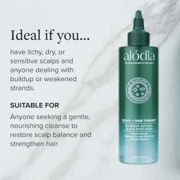 ALODIA Nourish & Heal Raw Organic Black Soap for Dry Scalp & Gentle Hair - Lavender & Spearmint Infused African Liquid Black Soap Wash - Gently Remove Buildup on Scalp & Strands - 8 oz