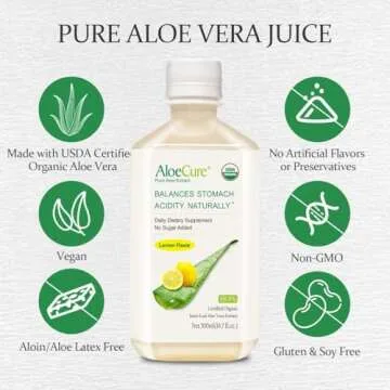 AloeCure USDA Organic Aloe Vera Juice Lemon Flavor - Natural Digestive Support