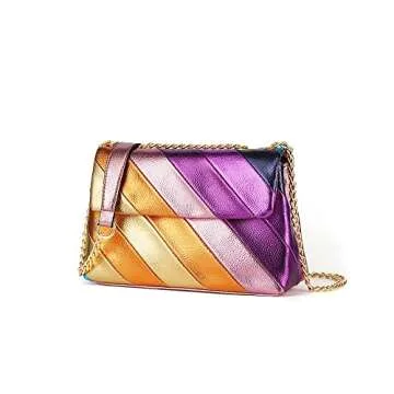 ALOLBAG Colorful Quilted Handbags Women Small Shoulder Purse PU Leather Clutch Purse (Pink)